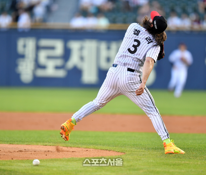• [포토] 1회초 송성문 타구에 맞고 볼 잃어버린 켈리
