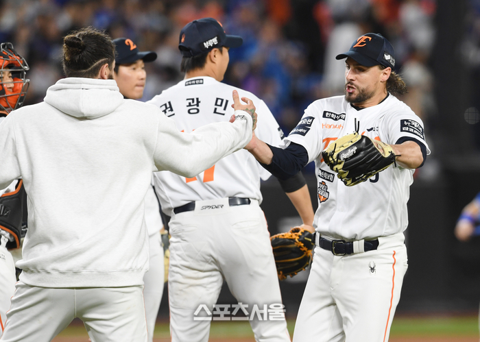 • [포토]한화 폰세-와이스, PO 5차전 승리 합작