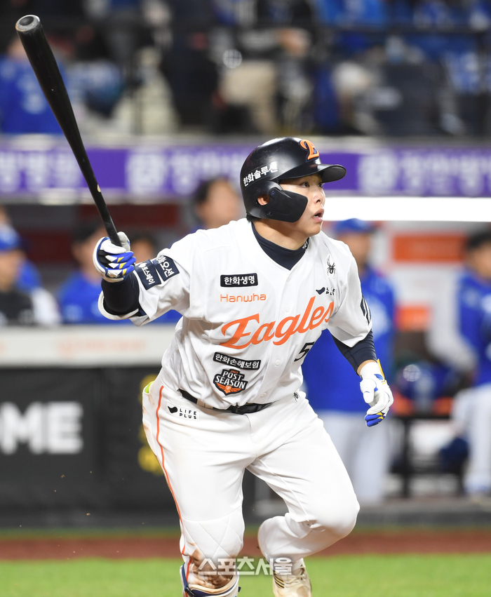 • [포토]쐐기 2점 홈런 넘기는 한화 문현빈