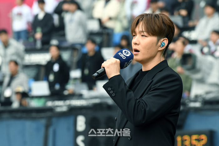 • [포토]한국시리즈 1차전 애국가 부르는 이창섭