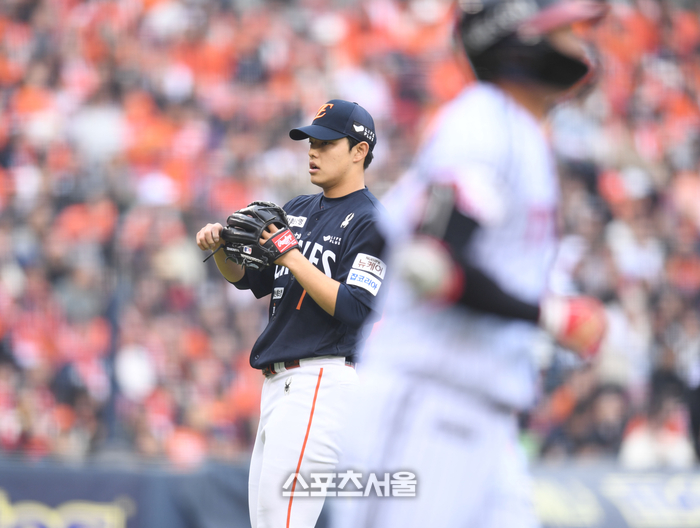 • [포토] 문동주 ‘볼넷을 주면 안되는데’