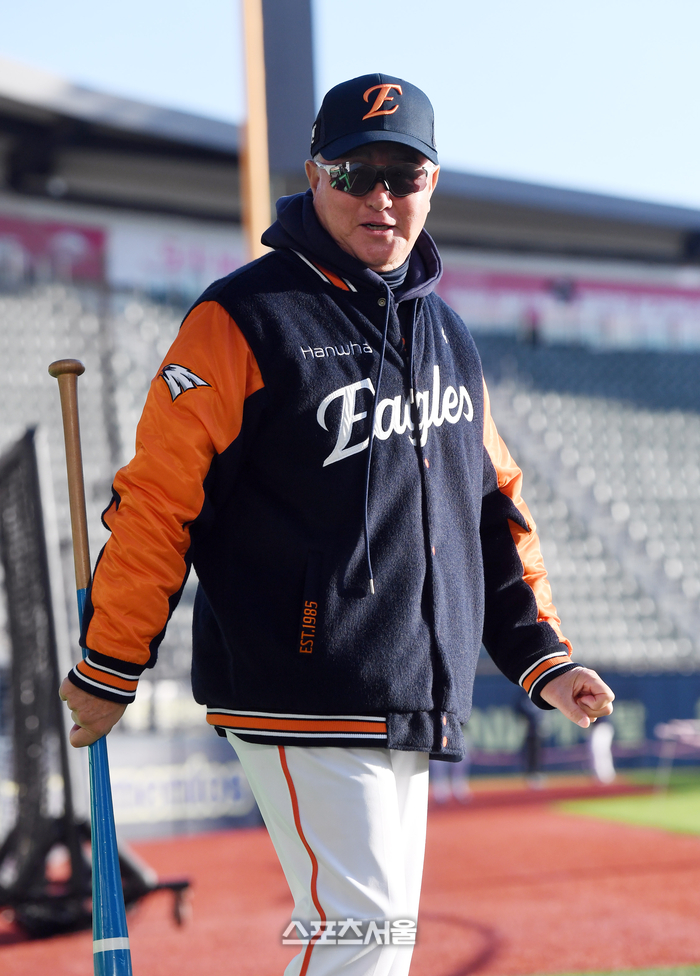 • [포토]한국시리즈 2차전 앞둔 한화 김경문 감독