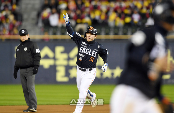 • [포토]한화 문현빈, 첫 타석부터 홈런