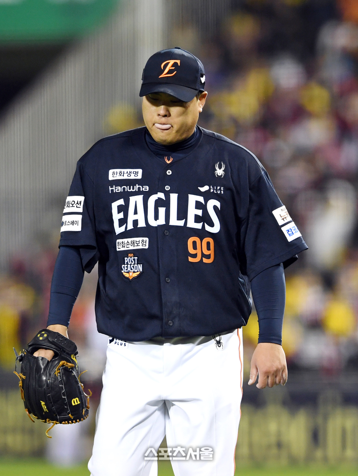 • [포토]역전 허용에 고개 떨군 한화 류현진