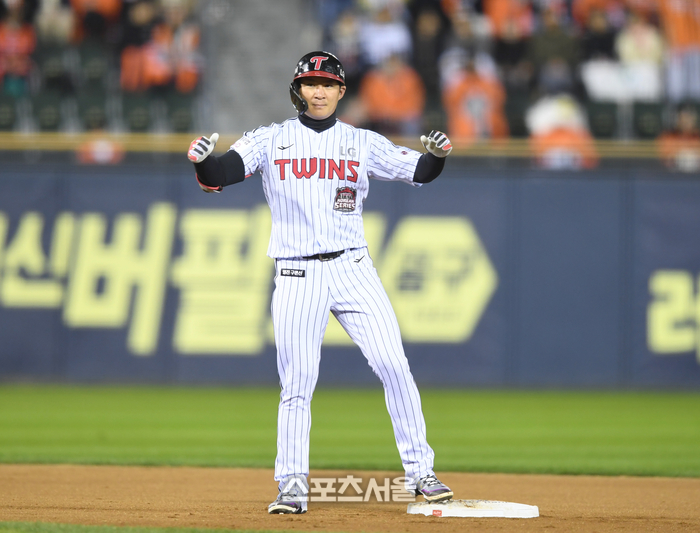 • [포토] 오지환, 7회 득점기회 만드는 2루타