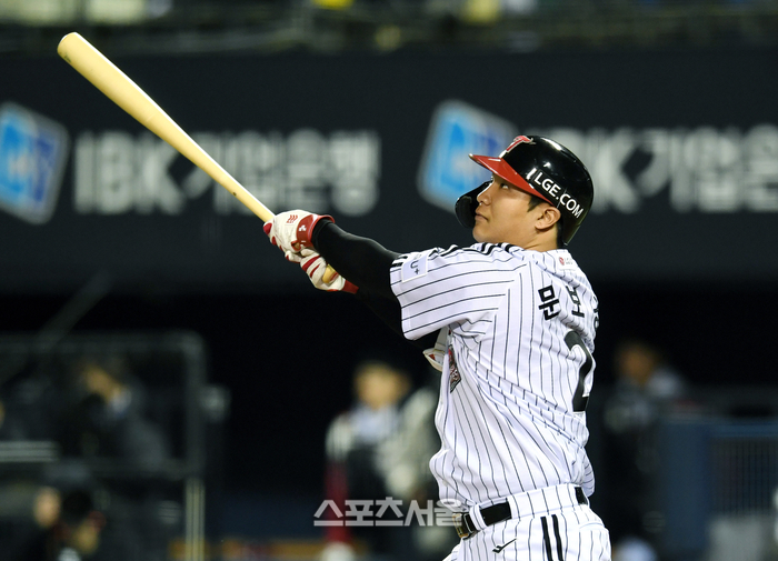 • [포토]‘진짜’ 홈런 넘기는 LG 문보경