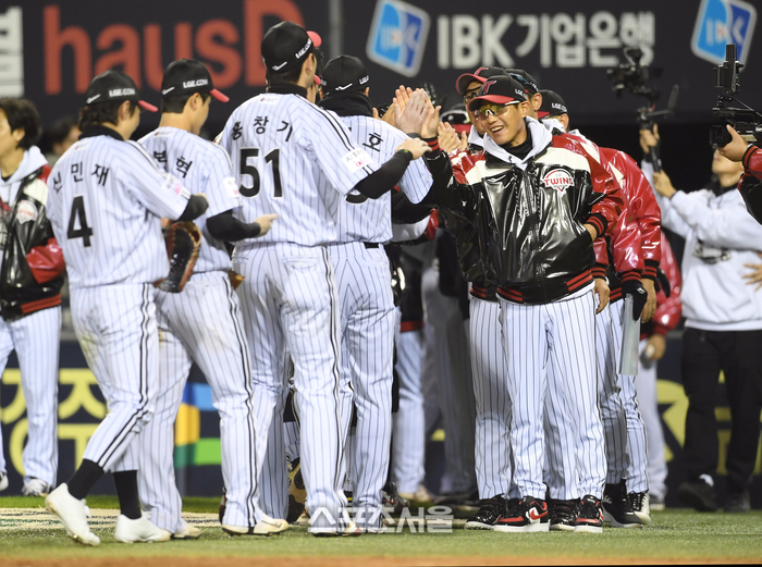 • [포토]2연승 하이파이브 하는 LG 염경엽 감독