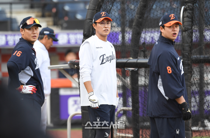 • [포토]KS 3차전 준비하는 한화 하주석-채은성-노시환