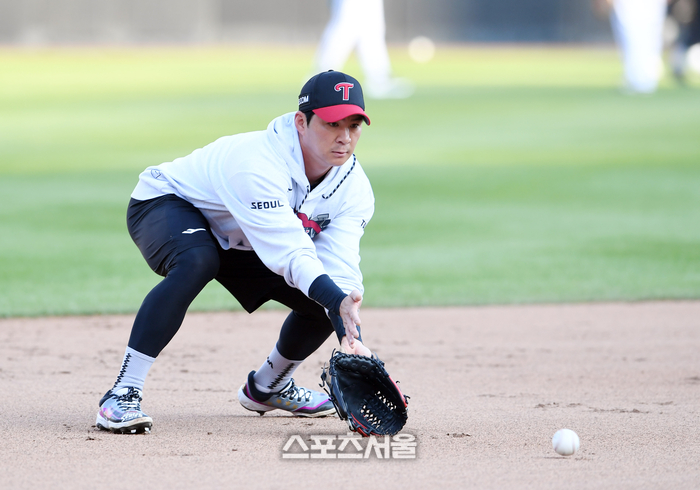 • [포토]KS 3차전 준비하는 LG 오지환