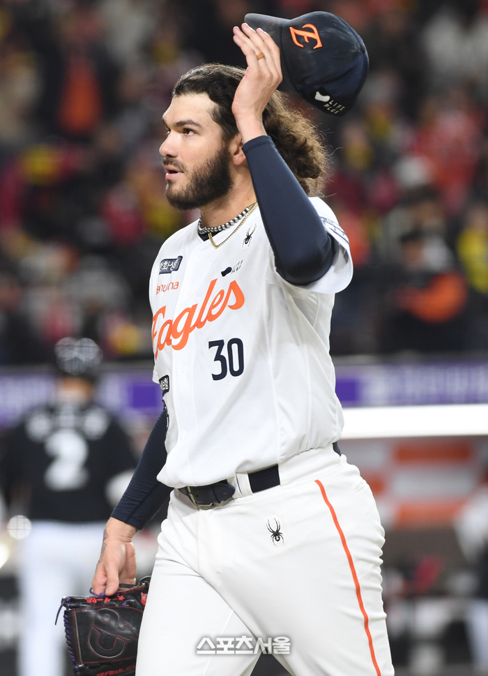 • [포토]6이닝 2실점으로 3차전 마무리하는 한화 폰세