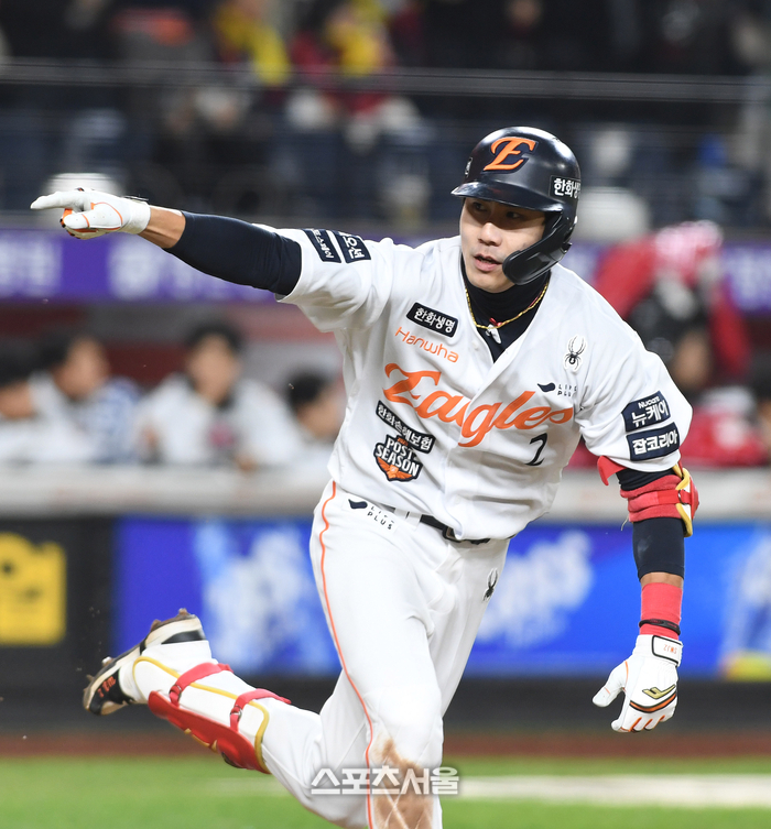 • [포토]한화 심우준, KS 3차전 8회말 극적인 역전 결승타