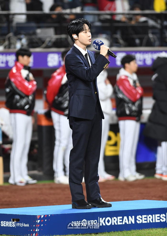 • [포토]NCT 도영, 한국시리즈 5차전 애국가 열창