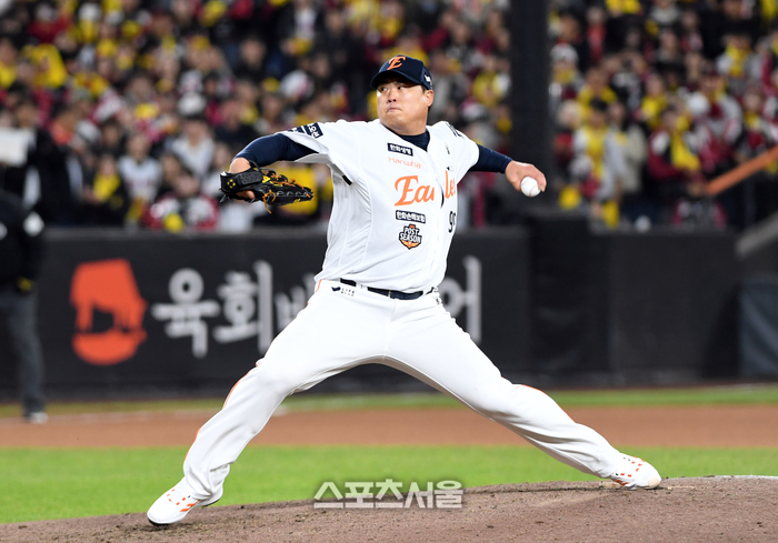 • [포토]한국시리즈 5차전 구원 등판한 한화 류현진