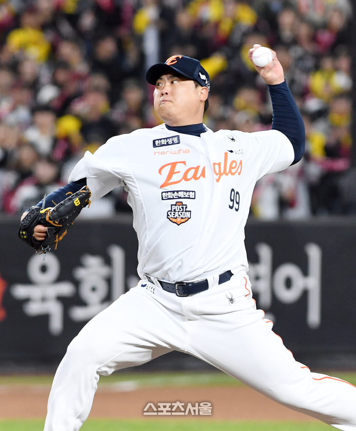 • [포토]한화 류현진, 한국시리즈 5차전 구원 등판