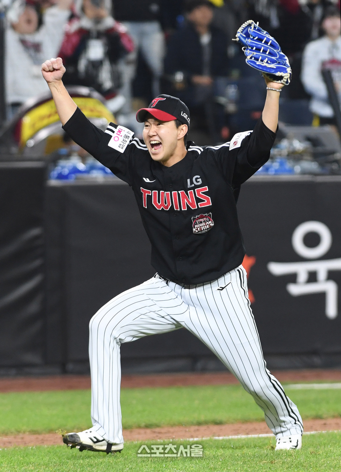 • [포토]우승 확정 짓는 LG 유영찬