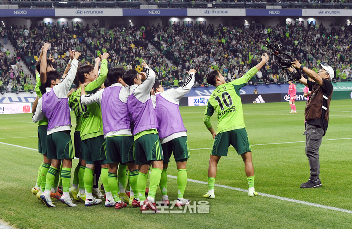 • [포토]전북 송민규, 선제골 단체 셀카 세리머니
