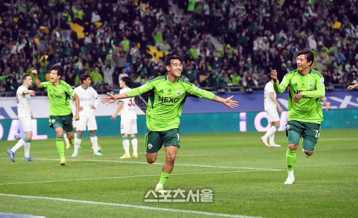 • [포토]홍정호와 함께 선제골의 기쁨을 나누는 전북 송민규