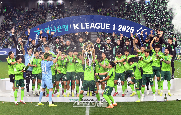 • [포토]K리그1 10번째 우승 트로피 들어올리는 전북