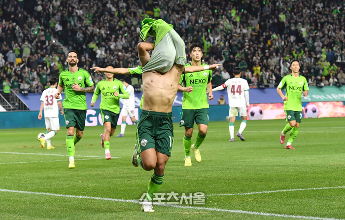 • [포토]세리머니에 마음 급한 전북 이승우, 안 벗겨져....