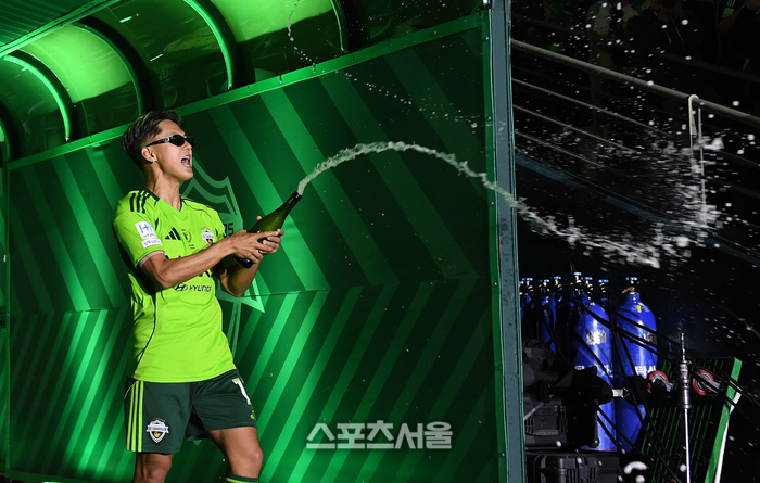 • [포토]전북 이승우, 우승 샴페인 맛 좀 봐라!