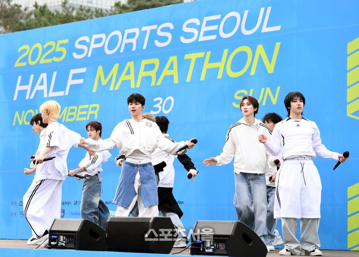 • [포토] 스포츠서울 하프 마라톤 ‘축하 공연하는 싸이커스’