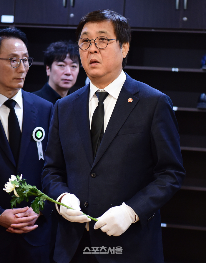 • [포토] 고 안성기 빈소에 헌화하는 최휘영 문체부장관