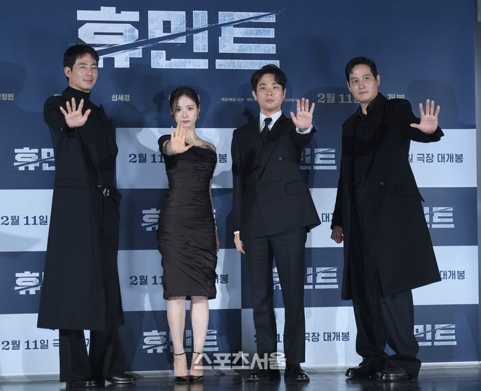 • [포토] 포즈 취하는 팀 ‘휴민트’ 조인성-신세경-박정민-박해준