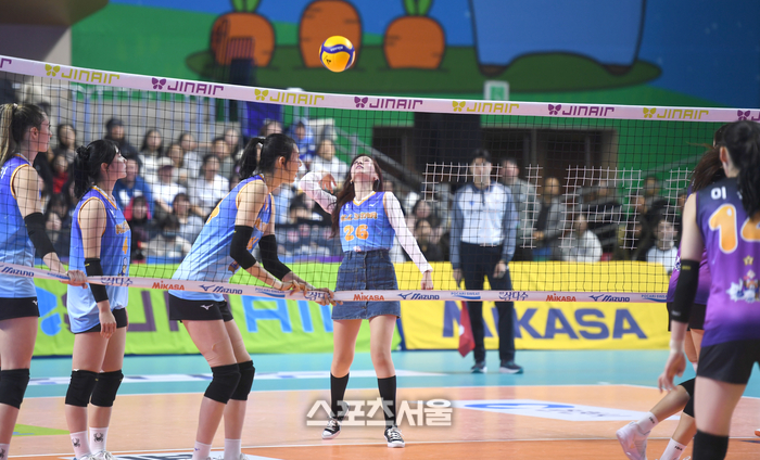 • [포토] 서브 넣는 신예원 아나운서