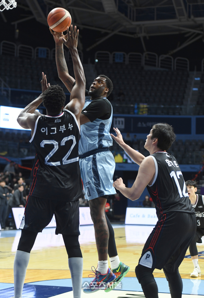 • [포토] 존슨 ‘수비 피해 원핸드슛’