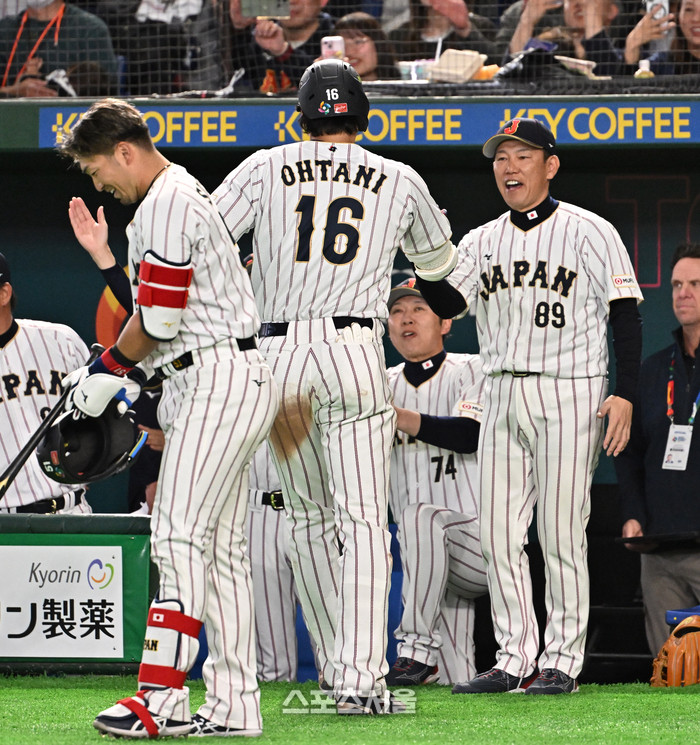 • [포토]이바타 감독과 홈런 하이파이브 나누는 오타니