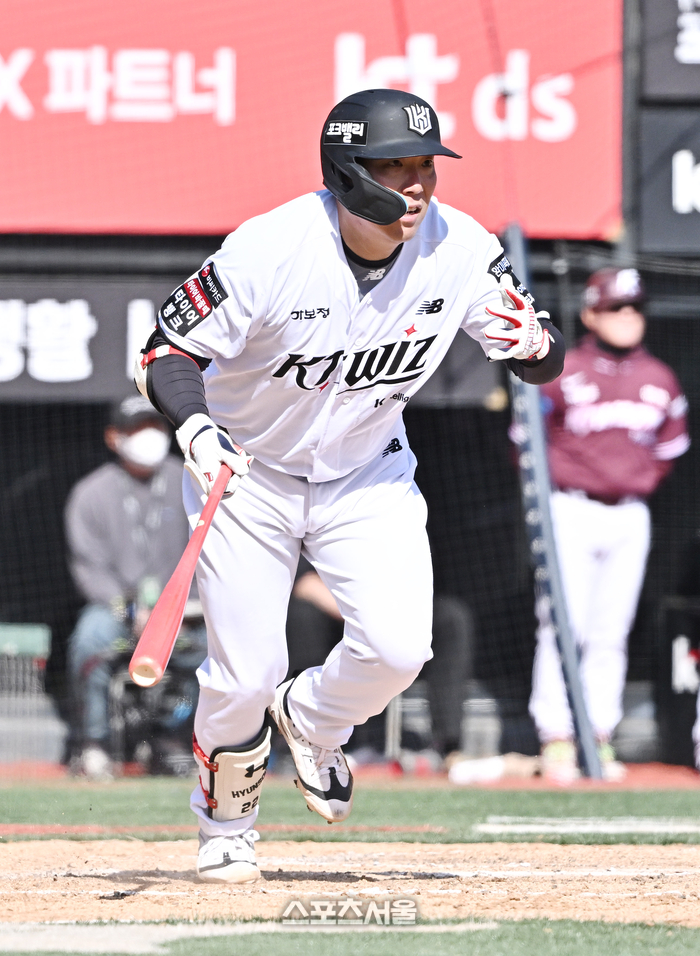 • [포토]2루타로 동점 만드는 KT 김현수