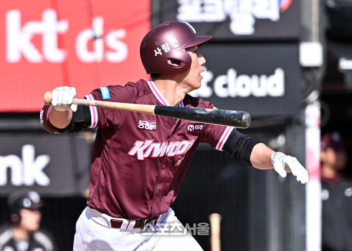 • [포토]키움 서건창, KT 박지훈 상대 1타점 2루타
