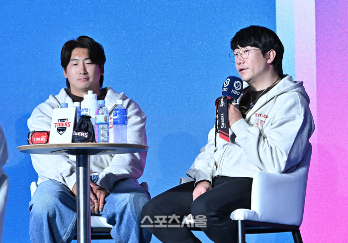 • [포토]질문에 답하는 KIA 나성범과 양현종