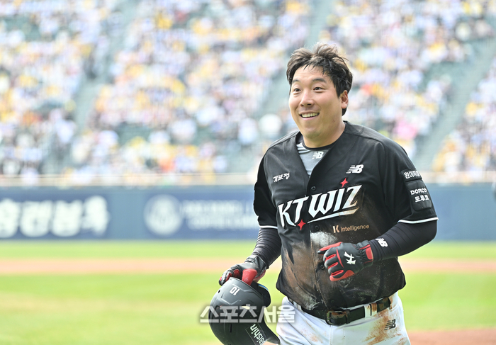 • [포토]선제 득점에 기뻐하는 KT 김현수