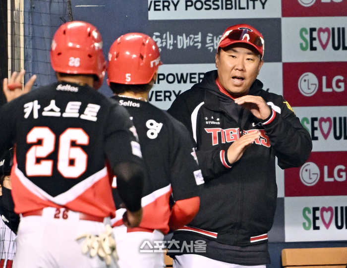 • [포토]2점 홈런 김도영 맞이하는 KIA 이범호 감독