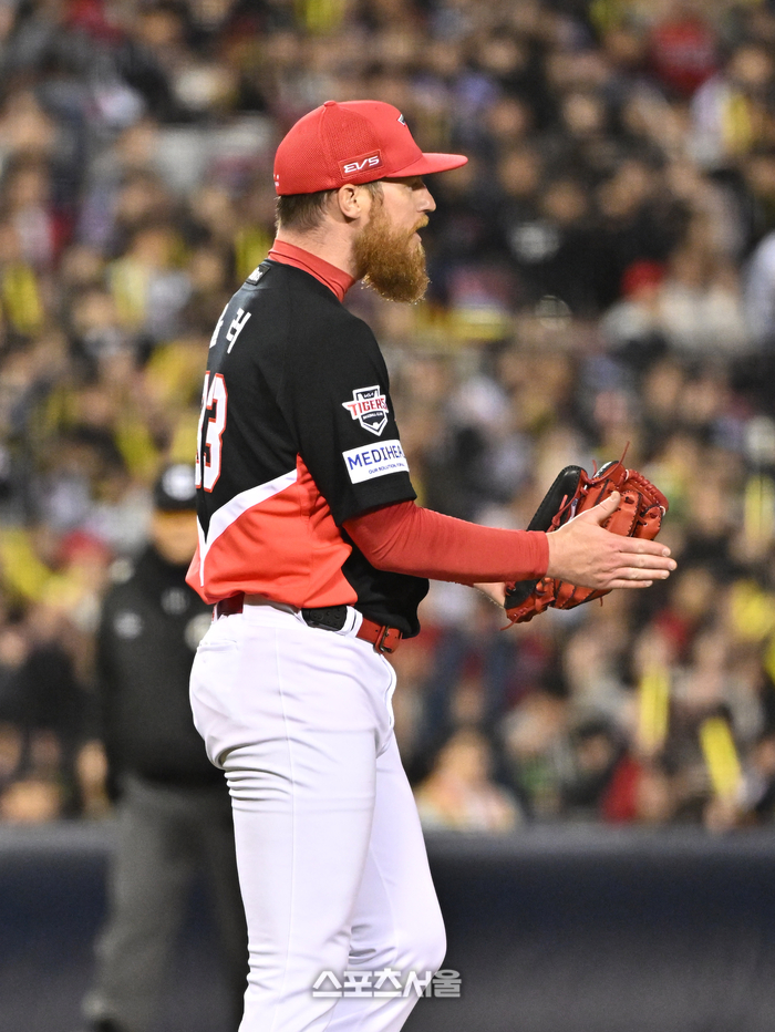 • [포토]승리 투수 요건 갖추는 KIA 올러