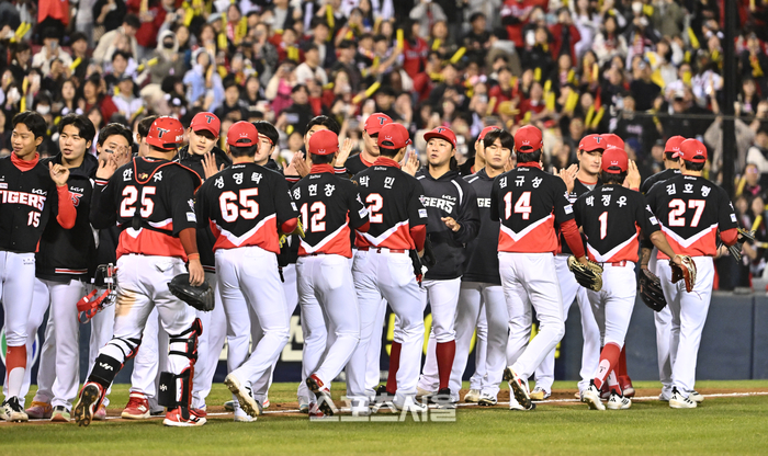 • [포토]승리의 하이파이브를 나누는 KIA