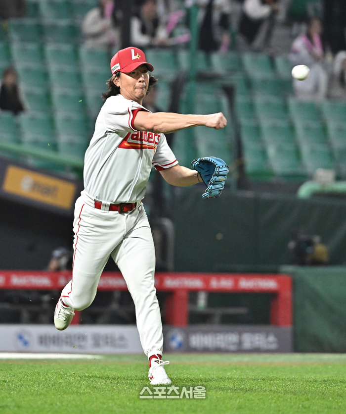 • [포토]땅볼 직접 처리하는 SSG 문승원