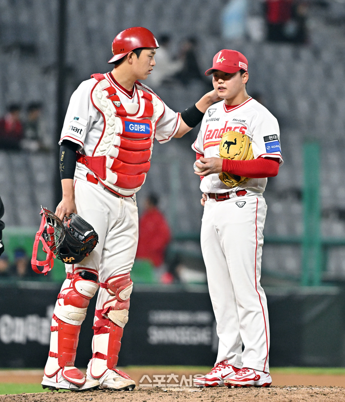 • [포토]SSG 조형우-이기순, 위기 넘겨보자!