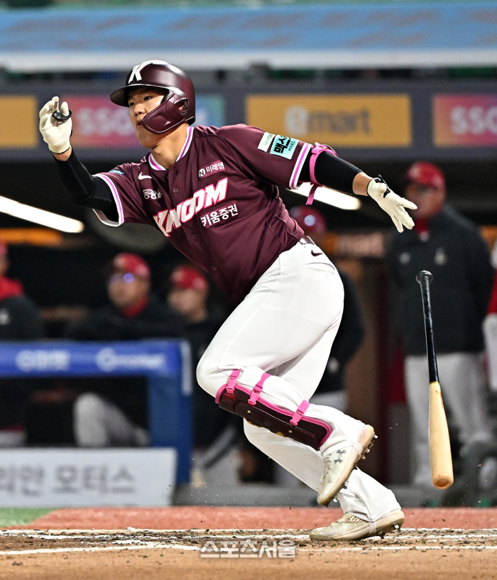 • [포토]안타로 만두 기회 만드는 키움 박찬혁