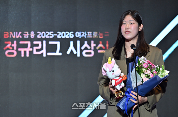 • [포토]BNK썸 김도연, 신인선수상 수상
