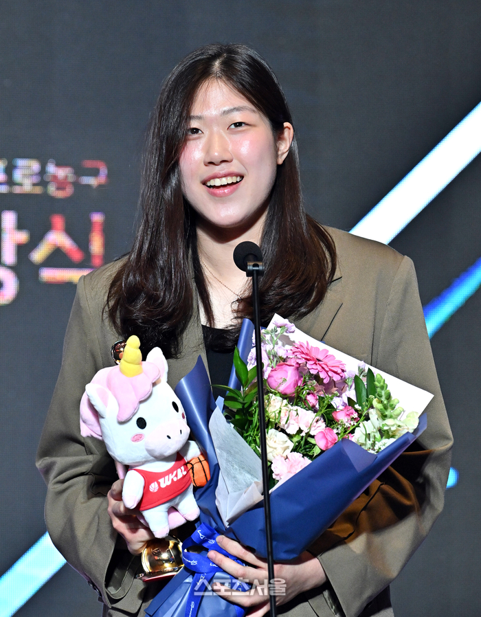 • [포토]신인선수상 수상 소감 밝히는 BNK썸 김도연