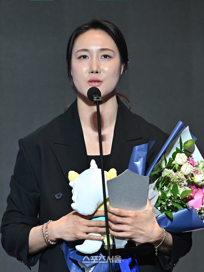 • [포토]특별상 수상 소감 밝히는 하나은행 김정은