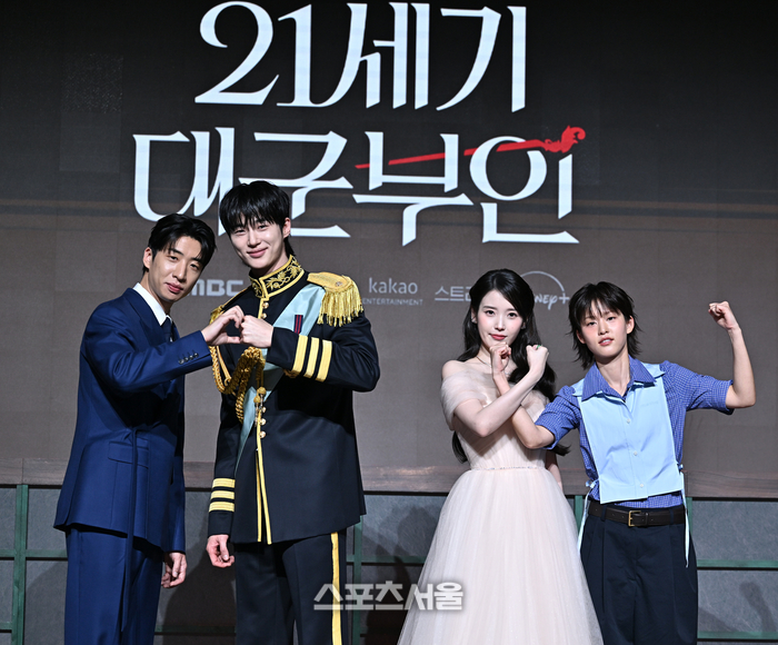 • [포토] 포즈 취하는 유수빈-변우석-아이유-이연