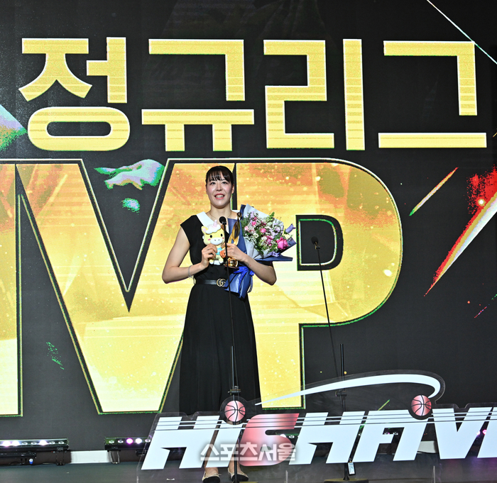 • [포토]MVP 수상 소감 밝히는 KB스타즈 박지수