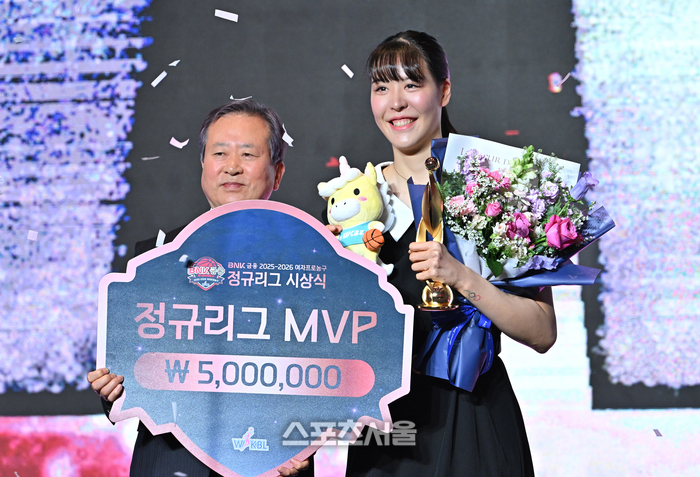 • [포토]정규리그 MVP 차지하는 KB스타즈 박지수