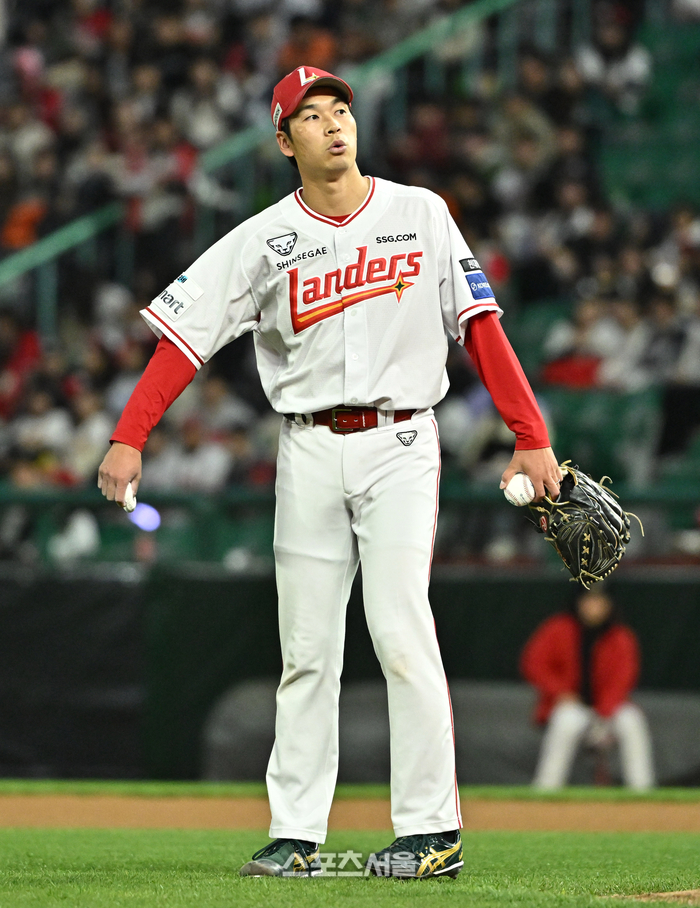 • [포토]밀어내기 볼넷으로 동점 허용하는 SSG 타케다