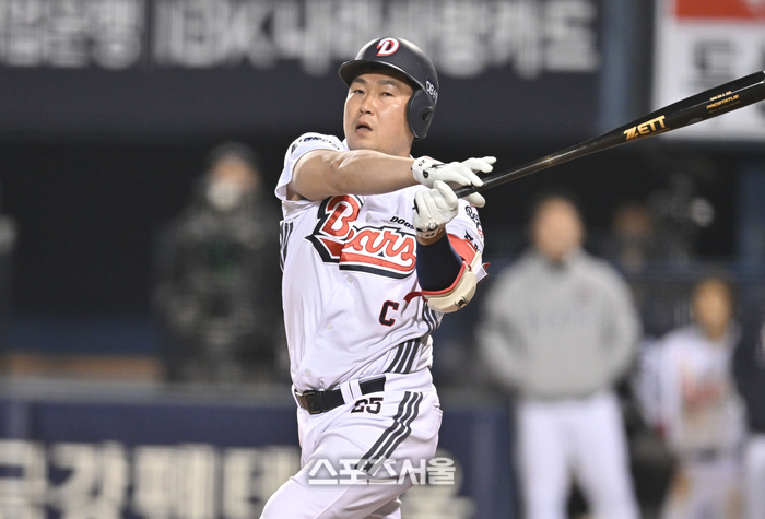 • [포토] 양의지 ‘욕심 좀 부렸는데’