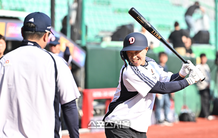 • [포토]두산 유니폼 입은 손아섭, 환하게 웃으며...