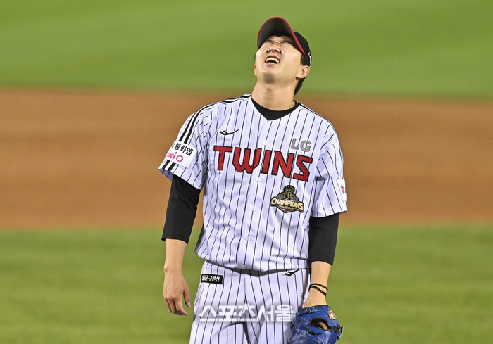 • [포토] 유영찬 ‘너무 쫄깃한 승리였어’